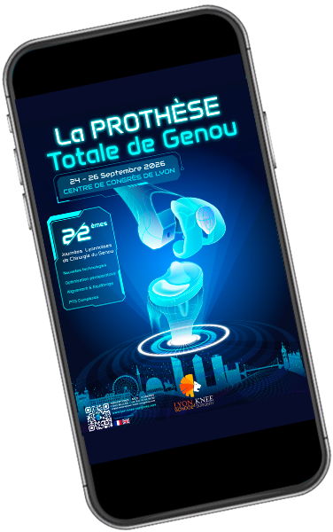 C’est avec un grand plaisir que nous vous annonçons l’organisation des 22èmes Journées Lyonnaises de Chirurgie du Genou, qui se tiendront du 24 au 26 septembre 2026 au Centre de Congrès de Lyon, sur le thème central de la Prothèse Totale de Genou.